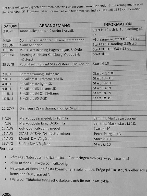 Nu är det sommarlov men det finns flera träningar som tävlingar, naturpass och HittaUt att åka på i sommar!